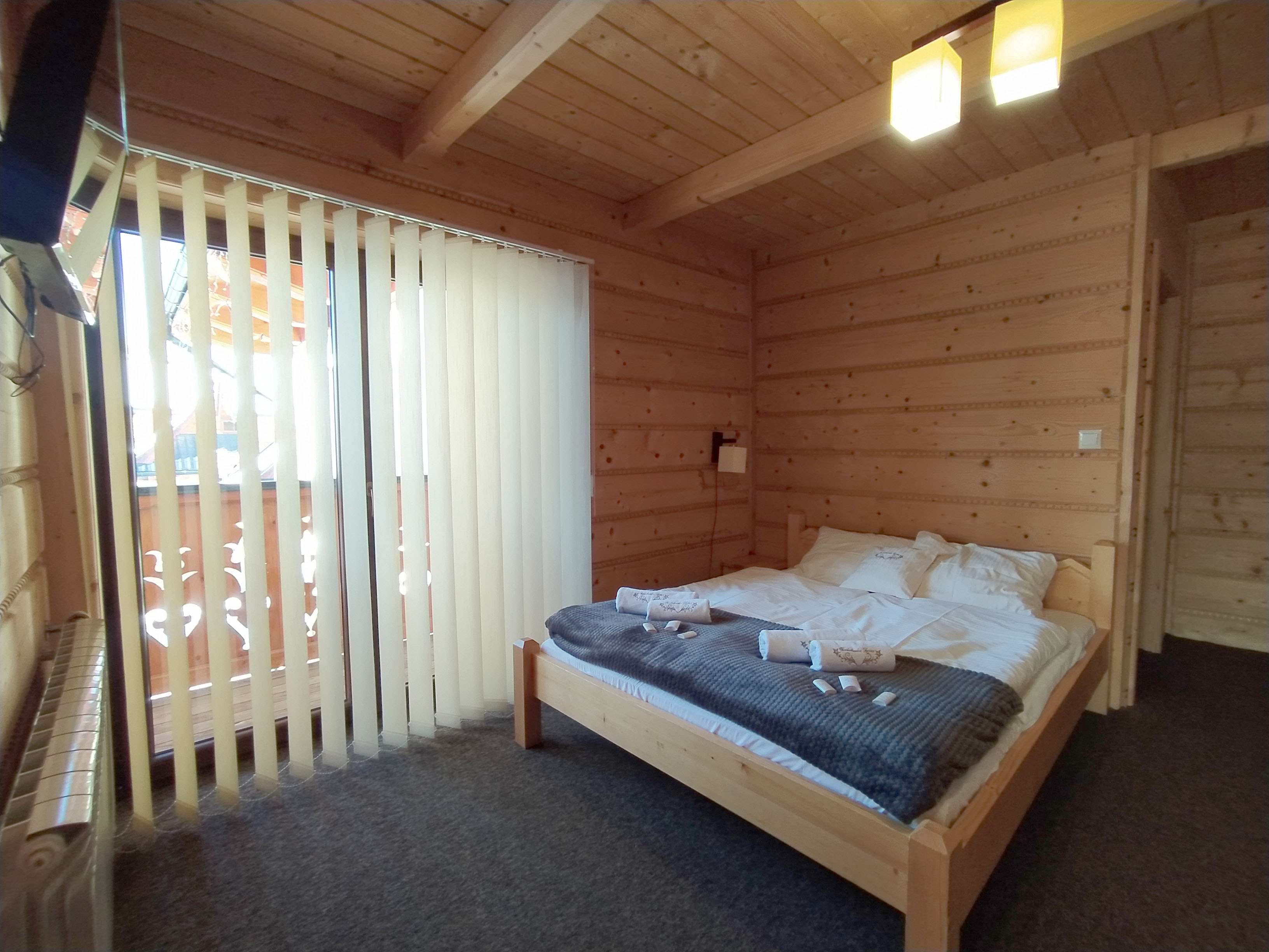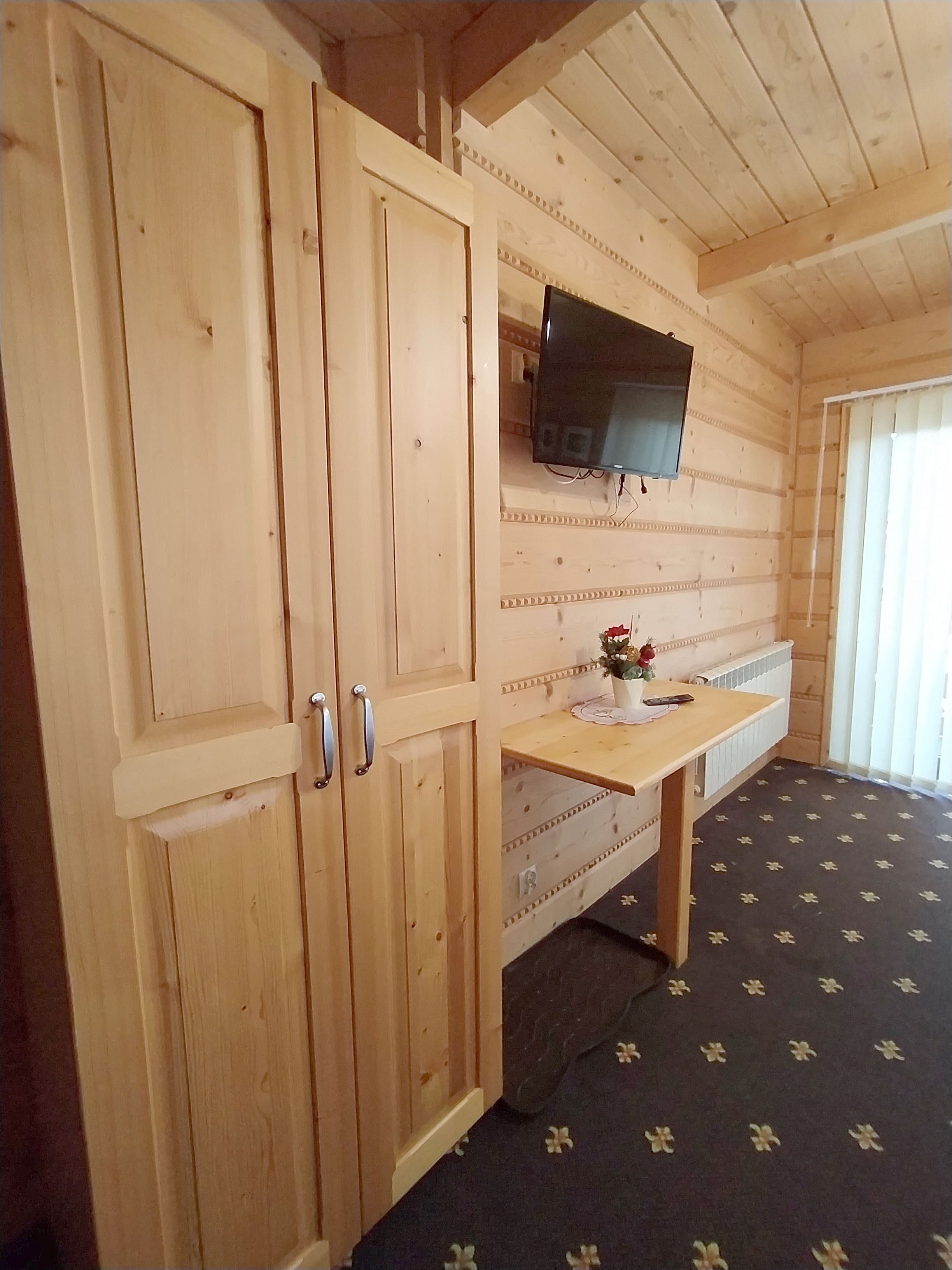 Pokój wykonany jest w regionalnym stylu góralskim. Elementy wykończenia wykonano z naturalnego drewna.